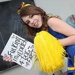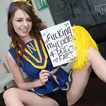 For the last few months, Alex Blake, head of her community college cheer squad, as been trying hard to pick-up Coach Yashua after practice to bang him...right in his classroom! Today's attempt was a success! Coach knows this 19-year-old black cock slut has been coming on to him, and today Coach gives in! 'What's that, Coach?' Alex asks. 'It's the camera I use to film the players during practice,' he replied. It doesn't take long for Alex to drop to her knees and make a suggestion: 'Let's make a porn! Just promise me, Coach, you won't show anyone!' Of course Coach makes that promise, and once he feels Alex's wet, warm mouth drooling spit all over his thick cock, there's no turning back! Coach uses his deck to fuck the shit out of this little snow bunny, stretching her willing, pink cunt until Alex moans in delight. She takes his cum load all over her pretty face, too! 'This can't happen again, Alex', Coach says, pulling up his pants. Something tells Alex this is just the beginning.