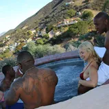 California -- a place where it's always sunny, Liberals roam freely, and back-yard hot tubs spawn sex parties. Don't believe me? Just check out what's going down here. Three couples, Sarah Vandella and Mandingo, Anissa Kate and Rico Strong, and Melissa May and Isiah Maxwell, are enjoying another sunny, warm December day in Southern California. Sure, there's football on the television and good food cooking in the kitchen, but what's really cooking is the front room of house, where these six will swap sex partners until everyone's satisfied. There's something for everyone here: barely-legals and facials, shaved cunts and girl-on-girl-action, over-sized black meat and over-sized, white-girl booty. Enjoy yourself, because you're about to witness a full-blown orgy, Dogfart style!