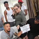 Carmen Valentina is a self-proclaimed "soccer mom"...and she's employed by a big internet firm as a project manager. She has a team of people under her, and she directs them to create web sites. Today she's excited, because through a referral, she's just landed five potential clients. There's just one issue: they all want pornographic websites built! "Oh no! I can't take that kind of business!" Carmen says. Which is about when one of the Bulls stands up and says, "can you take this kind of business?" and then he pulls out close to 10 inches of black meat. Carmen can't believe her eyes. Certainly, her husband's penis isn't that big...in fact, she's never seen one like this in her life! With her guard now down, Carmen does something she hasn't done in all her 30 years: a gang bang!! But she couldn't help herself. Five young, handsome men -- "Bulls", some say -- and after the first one pulled his huge cock out, they all did...and all five were just as big! Naturally, Carmen quit thinking about Hubby and fell to her knees to service the Bulls with her open, willing mouth. Then, her hot, pink cunt was being stretched like she had never felt. After our Bulls ran their train on the willing housewife, not one -- but two -- filled her womb with their hot spunk. "But I'm not on birth control!" The other three, not wanting BABY DADDY status, dropped larger loads in her mouth and all over her face. And it looks like Carmen's going to take them on as clients after all!!