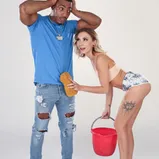 Mazee wants to take his Sportbike out to a meet up so he decides to get it detailed. He calls up Chloe's bike washing service and she comes over to wash his bike. Just before she gets the soapy suds on the bike while they are talking she says "Oh, wait, I just realized I don't want to get the soap all over my cute top." and she takes it off and asks Mazee to hold it. Mazee stares in amazement, then she says "Oh I should take these off too so they don't get wet." and takes off her shorts as well. Then she grabs a sponge loaded with soap suds and begins soaping up her tits, then ass while he watches...and then asks Mazee to help. He begins rubbing the sponge on her tits and ass and can't believe his good luck. Then she says "There's something else I think I should clean too!" She squats down and opens his pants and starts blowing him. This leads to crazy sex all over the car tires in front of the bike. They finish in doggy and she turns around and takes his hot load all over her face. Then he says "Are you going to still wash my bike?" and she says "Hell no, I don't wash bikes, I fuck hot guys!"