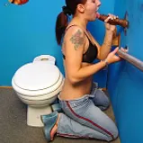 When she's not hitting the gym Dominica is online looking for interracial gloryholes and swinger's parties. Dominica hit the jackpot when a recent online search found this restroom where white girls have given testimonials about black cock encounters. She had to see if it was true so the next thing she knew, she was there. With a pussy full of juice ( and a purse full of mace), Dominica spent some time in this gloryhole before the rumors became a reality. the lack of proper soap, no toilet paper, and filth surrounding her didn't faze Dominica once her lips felt the tip of black cock. She worked her way down the shaft savoring every second, and inch, that she could. A good cocksucker is a thoughtful cocksucker so Dominica treated the luckiest black man in the world to some ferocious stroking. She didn't stop pleasing him and her lucky lottery numbers came in the form of streams of black seed.