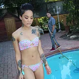 Take a long look at newcummer Honey Gold! You've probably never seen her before, and what a piece of ass! Today she's poolside, as her long-time poolman is skimming the pool. Like most girls her age, Honey hates tan lines and wants to sunbathe topless. Would the poolman help her get out of her bikini top? It's not going to stop there, as Honey has had her eye on him for a long, long time. Poolman takes it one step further, removing her bikini top and kissing Honey before dropping on a knee to lick her tight, freshly-shaven cunt. Honey returns the favor before getting her brains fucked out. Those orgasms you're witnessing are real, and to Honey's surprise, the Poolman makes her squirt...not once, but twice! And the second time? It's just as the Poolman fills her super-tight cunt full of his jizz!! Catching a simultaneous squirt and pop shot is a once-in-a-lifetime event, and the dickloving Honey knows this! She's exhausted after getting railed!
