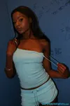 Jaden Simone is one hot piece of chocolate ass. She's only 19 too. When I asked her if I had a chance with her, she gave me the polite non-answer, which means no. I'm a little too old she says. Hell I can't compete with the 19 and 20 year old studs she's used to banging. But today there is some lucky stranger, probably much older than 20, that will get to be sucked and fucked by Jaden. That's right, I said fucked. Imagine fucking some 19 year old pussy through a hole in the wall? Never getting to meet her, and that's prolly a good thing because if she met you the sucking and fucking wouldn't have happened in the first place. Man I would give almost anything to be 20 again so I could hook up with Jaden!