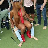 An American rite of passage: The Bachelor Party. You've probably been to one...but I bet you've never seen one as crazy. Enter Jayden Starr. She's the hired entertainment. This is the bachelor's last day of "freedom", and he's going to enjoy every minute. His buddies didn't spare any expense, either; they knew what they were getting when they gave the voluptuous ebony beauty the gig. Jayden's giant boobs are matched by her equally giant ass...and both are a sight to behold! She's hired to give the bachelor a blowie, but Jayden can't stop with just one. There's 13 more fellahs whose balls are aching, and Jayden is down to alleviate all their stress! Why stop with her mouth? Jayden's so slutty, she's going to let all the fellahs hit that wet snatch before they unload. And unload they do! Massive, giant ropes of jizz fly, causing Jayden to look like she just stepped off a bukakke set in Japan instead of a bachelor party in America!