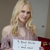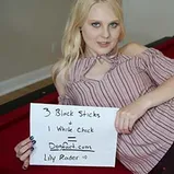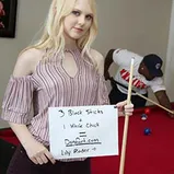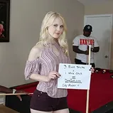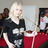 What starts as an innocent game of billiards turns quickly into an all-out fuck fest. In addition to being a "BCS", Lily Rader considers herself a "pool shark" -- but her skills are obviously lacking. And instead of money, they're playing for articles of clothing. Miss a shot? Pull off your shirt. Sink the cue ball to scratch? Pull those panties off! Since she's a black cock slut, it doesn't take much for Lily to drop to her knees and open her wet, willing mouth wide. Really wide. Because today's pool players are all well-hung Bulls, and, as always, they're white-girl horny! After using that sweet mouth to warm the Bulls up, Lily offers up her soaking wet, pink cunt. Like most Black Cock Sluts, Lily's a Size Queen, so she'll take even the largest slab of black meat. After they've all been deep inside Lily Rader, she'll either take their cum on her face...or swallow it up. There's so much, it's almost like a late lunch! Lily's full and won't worry about dinner tonight!