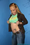 Melrose Foxxx is a newcomer on the porno scene. She is going through everything a porno newbie goes through. Lying to her boyfriend, making cash, scared to do anal... and never even seen a GloryHole. SO we bring her to a secret adult bookstore and introduce her to a strange cock. But before we do, we have to get her out of those clothes. And that's easy because Melrose likes getting naked for almost anyone! Once she's naked, a strange dick come through the hole and Melrose knows exactly what to do. Drop to her knees and suck that cock till it blows all over her face. And as you can tell from these pictures, it blows all over her sweet face. Enjoy!