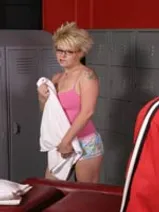 Missy Munroe...What an interesting piece of ass! From her wild punk hair and glasses, to her sweet ass that won't quit, one look and you just know she's going to be a sizzler! The scene starts with Missy as a massage therapist with an itch for lots of black dick, so she purposely double books her 2:00 appointment with the express purpose of having her hot pussy double stuffed with black meat. After a little awkwardness from both customers, she just jumps right in and starts sucking dicks like the craven slut she really is! The sounds that come from her mouth while she's taking a huge dick down her throat seems more appropriate for a horror movie than a slut movie, but that's Missy for ya!