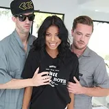 Nia Nacci just graduated high school. Class of 17! She's still living at home -- with her parents. Speaking of that, her parents are doing a major remodel, and the house is in disarray. If you've ever dealt with home remodels and general contractors, you know it's a pain in the ass. They're always behind schedule and over budget. Especially the two who were hired by Nia's folks. They're so bad, they had Nia check on the progress while they're on vacation! It's worse than anyone thought, too. Things are a mess, but the two supervisors are about to cut a deal with the slutty, barely legal. It's a deal they can't believe! Nia's such a slut, she wants them to pound her little ebony cunt! If they do, she won't tell her folks how bad things are! And these two do exactly that: they skull fuck her first, then pound her pussy into next week before unloading! One of the dudes paints her pretty face white; the other had Nia open wide for the big swallow! And Nia's folks? She's going to tell them everything's right on schedule!