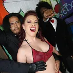 My congregation, it appears as if bigotry to black folks isn't just in America. Europe still sees us as slaves and Olga is about to be the Ambassador of Good Will for the Interracial Blowbang. She must be from the part of Russia that barely gets any sun but that didn't matter to us one bit. She opened up the passage to her white pussy as well as her mouth which brought a smile to our normally pissed off faces. Shit, I think I even saw Brother Tone Capone crack a smile as this voluptuous white girl was taking all his inches deep down her throat. She was surrounded by 360 degrees of black dick. I can vouch for the fact that her pussy was tight as fuck but slippery as well. We took turns sliding in and out of her white crack while her mouth was busy in overtime mode. Olga was kept warm by a blanket of black jizz which is known in any language no matter where the white bitch is from.